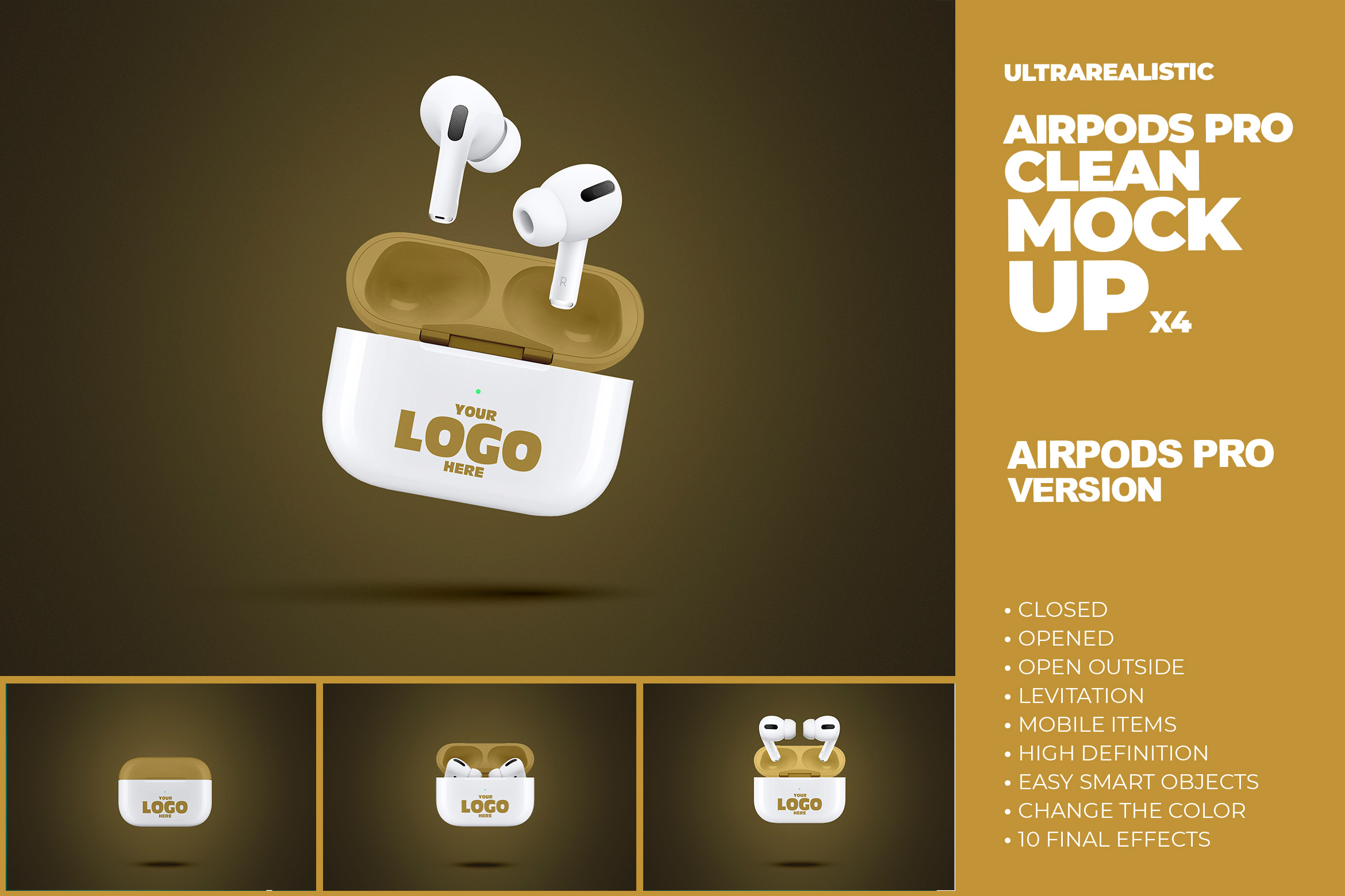 This Airpods Pro Clean Mockup x4 is great to present your minimal and clean logo. Ready to use and easy to change with your art.