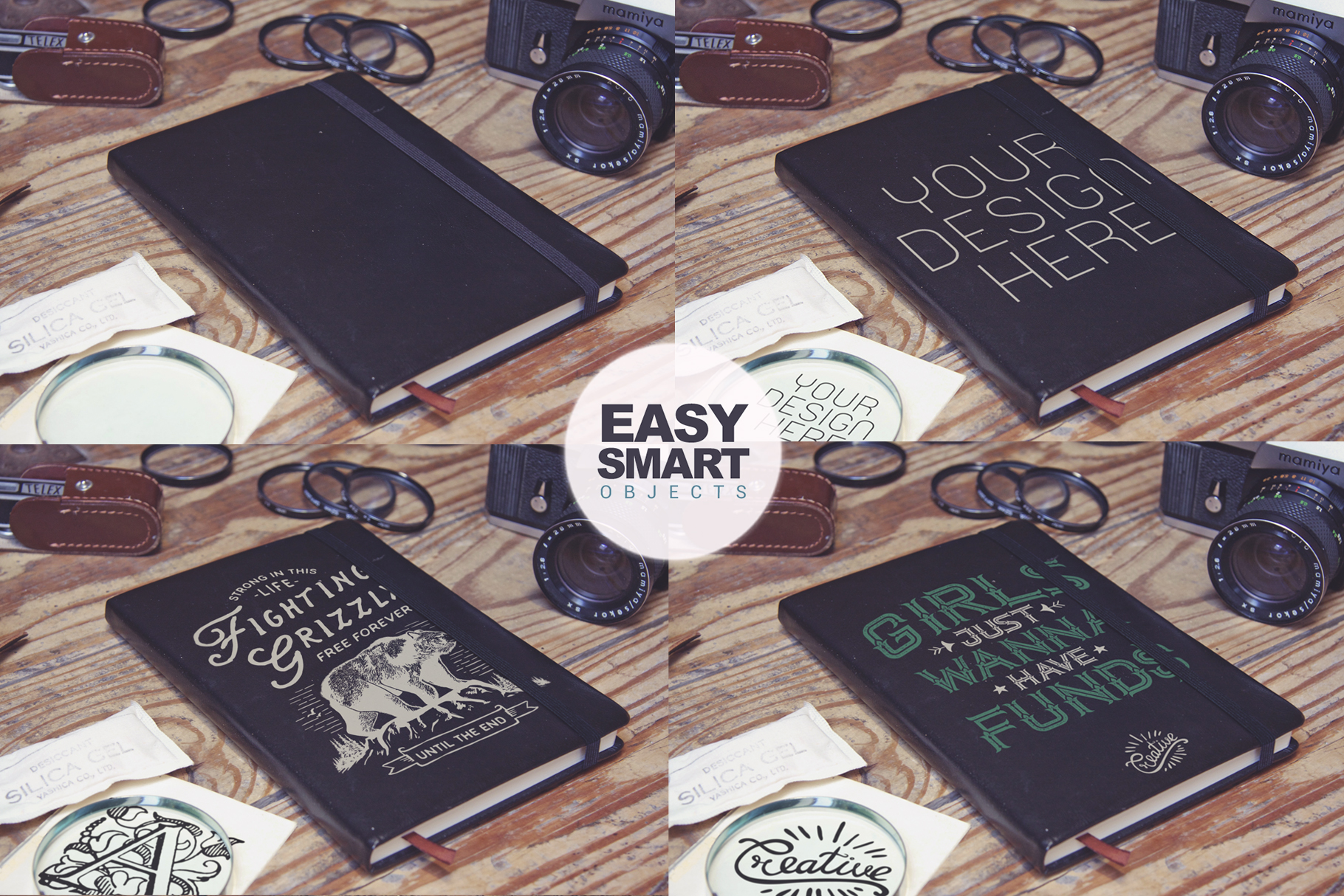 Simply place your designs in our smart object artwork layer, save out the photo and you’re done!