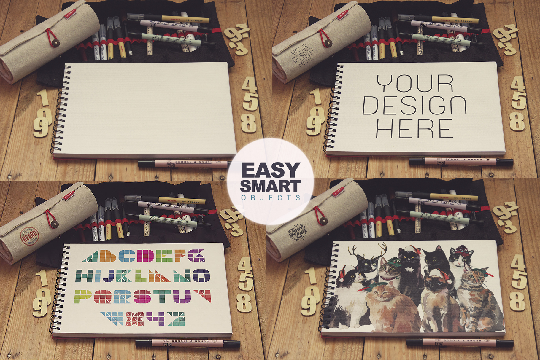 Simply place your designs in our smart object artwork layer, save out the photo and you’re done!