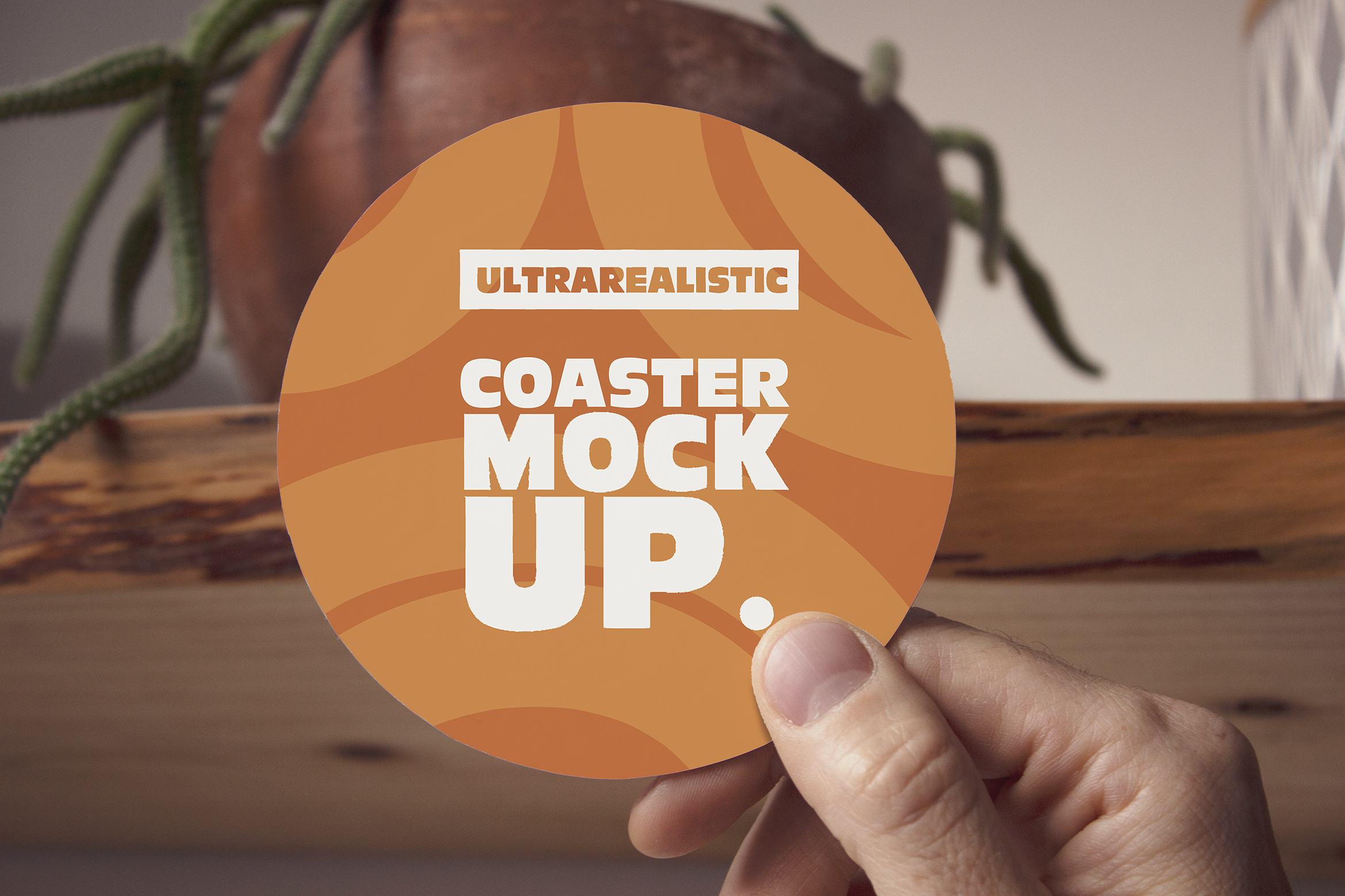 This Hand Round Coaster Mockup is great to present your designs!